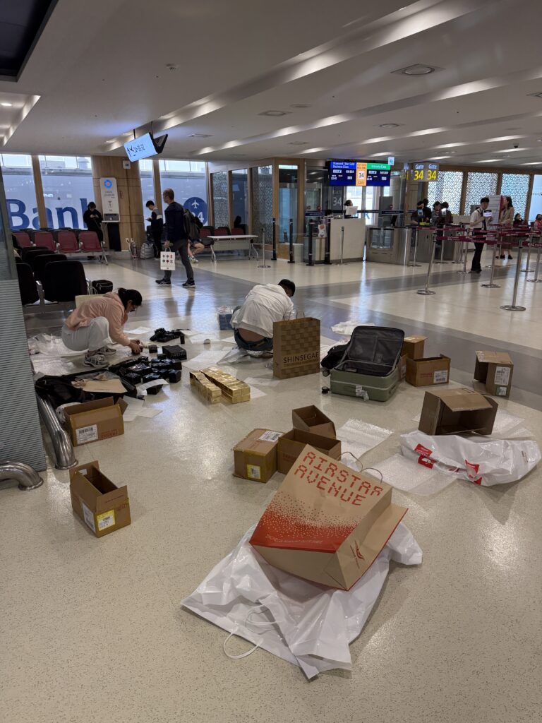 乗り継ぎのために降り立った金浦空港では、道端で堂々と荷物整理をしている方々を見かけました。