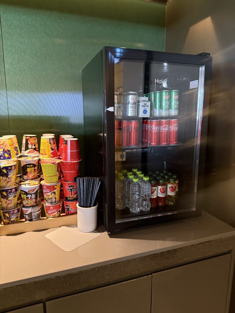 中華圏や韓国のラウンジには必ずと言っていいほどカップ麺が置かれているイメージがありますが、ここも例外ではありませんでした。
