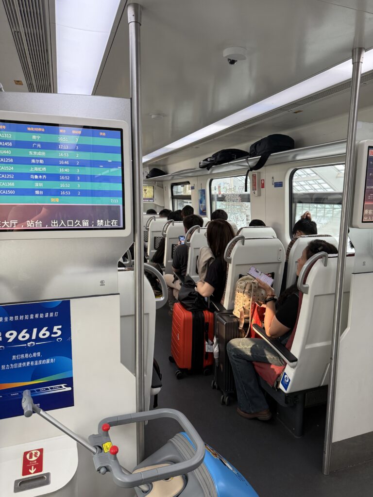 乗車の際は、電車を待つ列などお構いなしに、中華人民の高齢者と思われる方々が我先にと言わんばかりに乗り込み始めたので