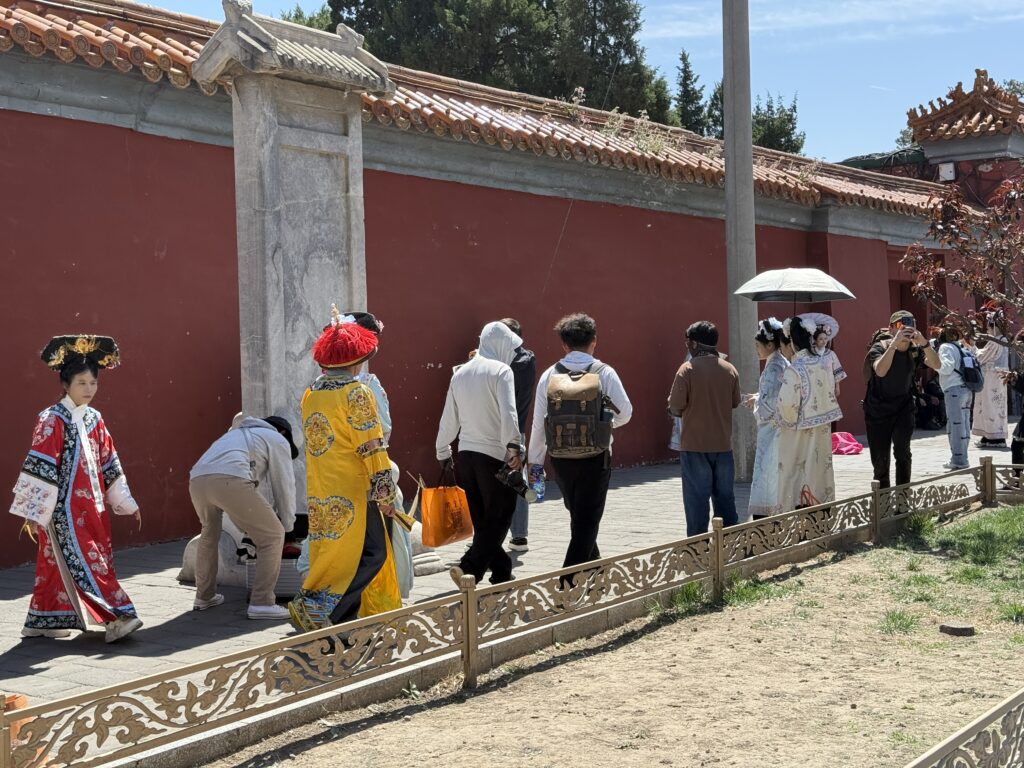 あるいは、歴史的な景観を背景にコスプレをして写真撮影に励む中華人民。