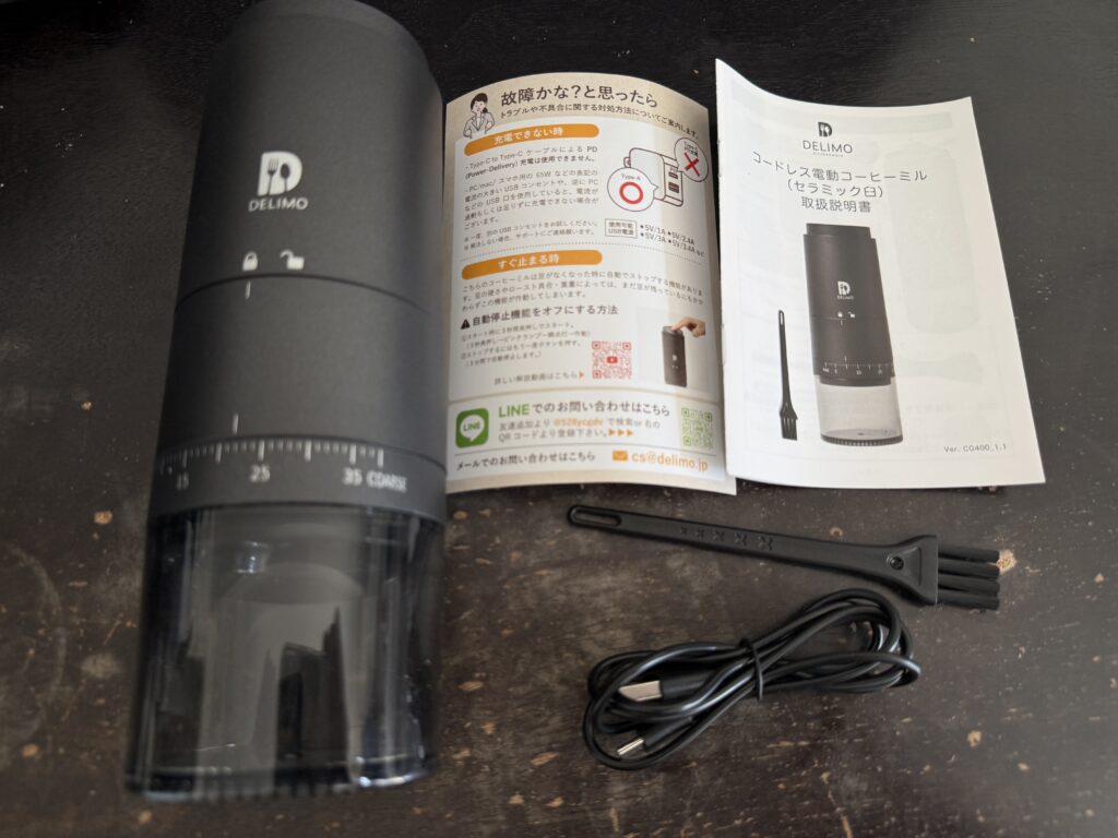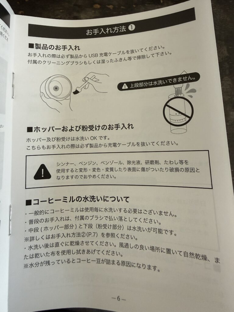 充電式について、基本的にコーヒーを淹れる場所は家庭内で固定なので、電源接続式でも問題は無いといえば無いのですが、大型の電動ミルでもないと基本的に充電式になるようなのであまり気にしないことにしました。