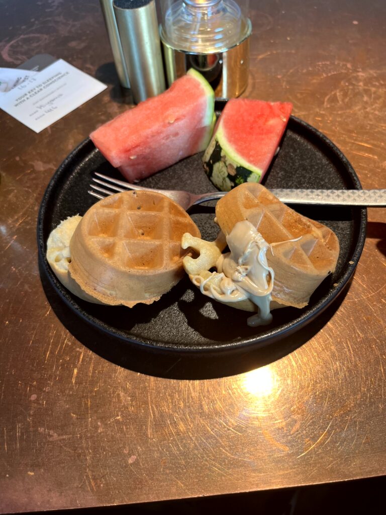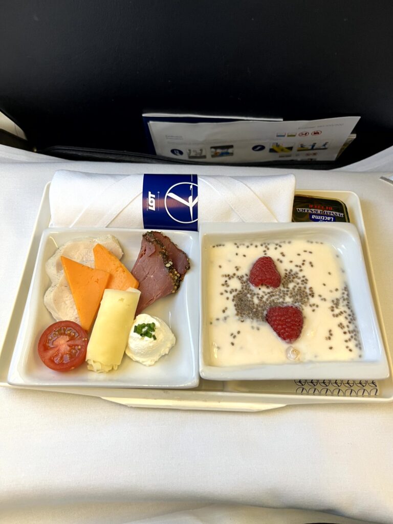 お食事は午前中のフライトだったので、ハムチーズとデザートのみの軽食でした。