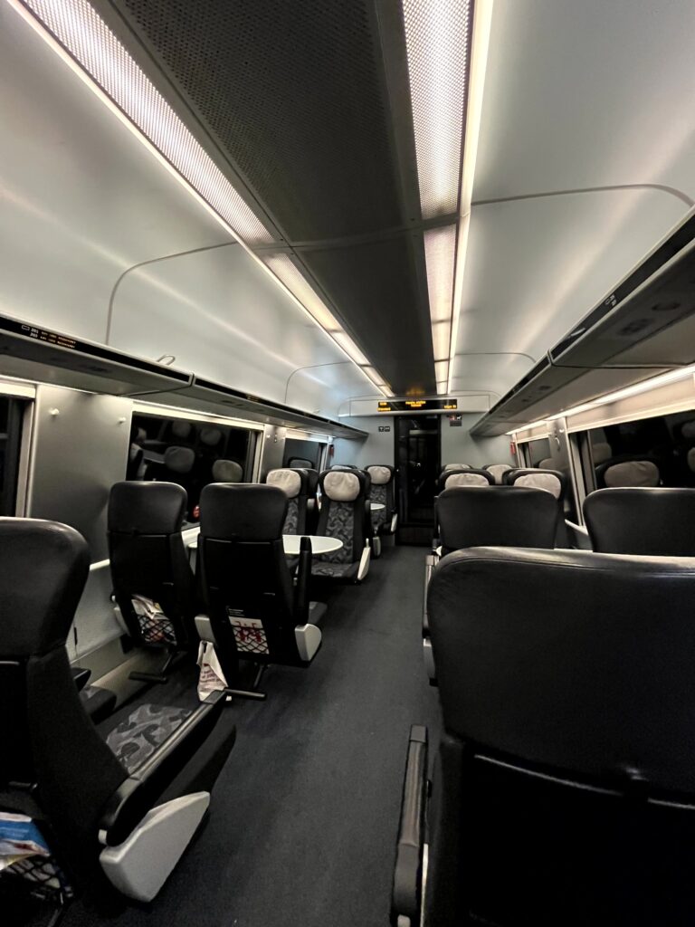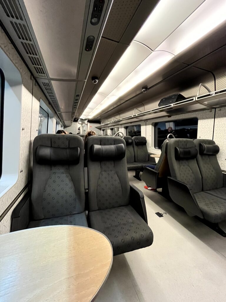 電車内は結構きれいで、電源はヨーロッパ仕様でした。