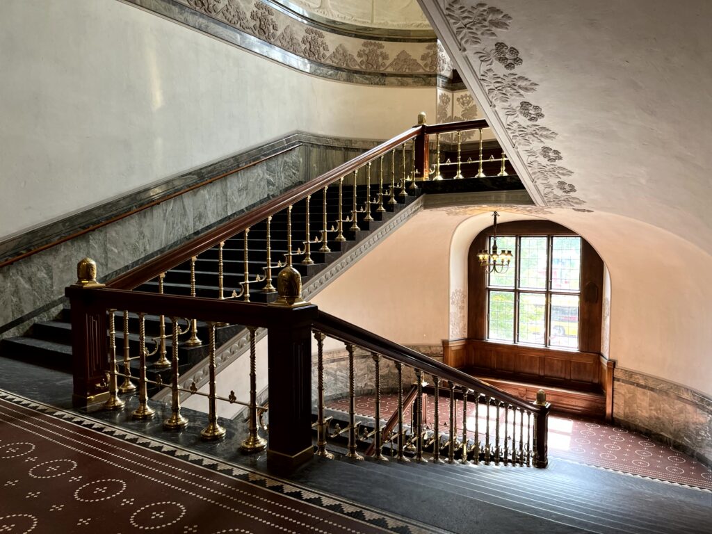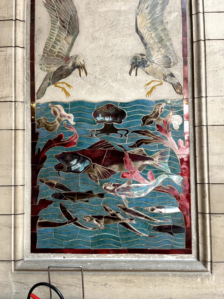 いい感じの階段があり、サーモンのモザイク画が飾られていたのが印象的です。