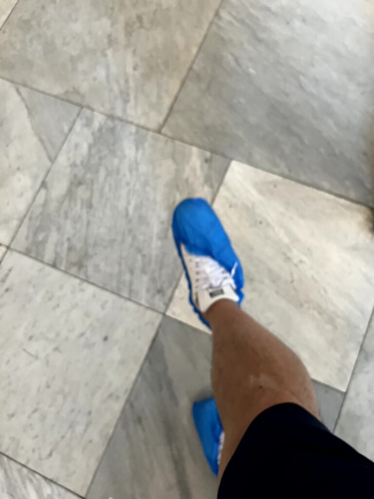 入る際はカバンはロッカーに預ける必要があり、靴にはカバーをかける徹底ぶりでした。
