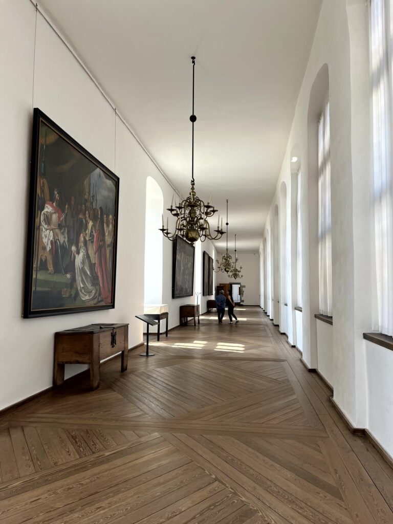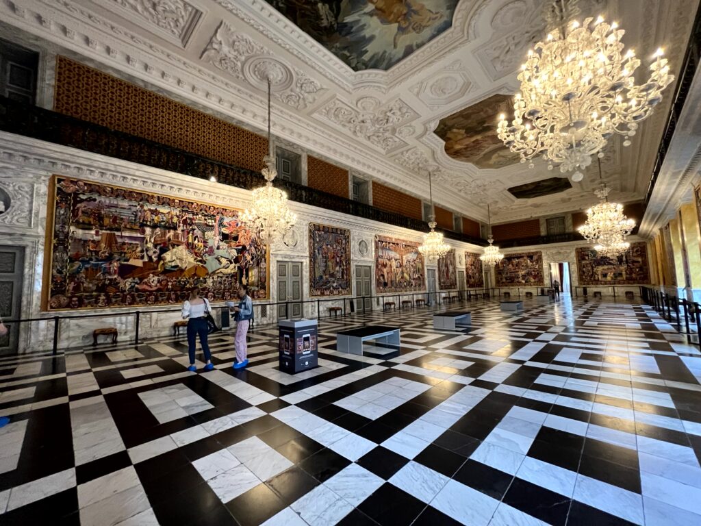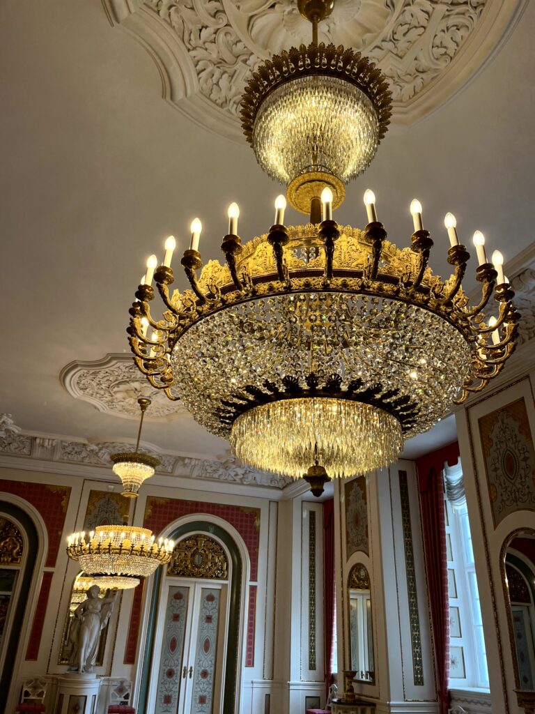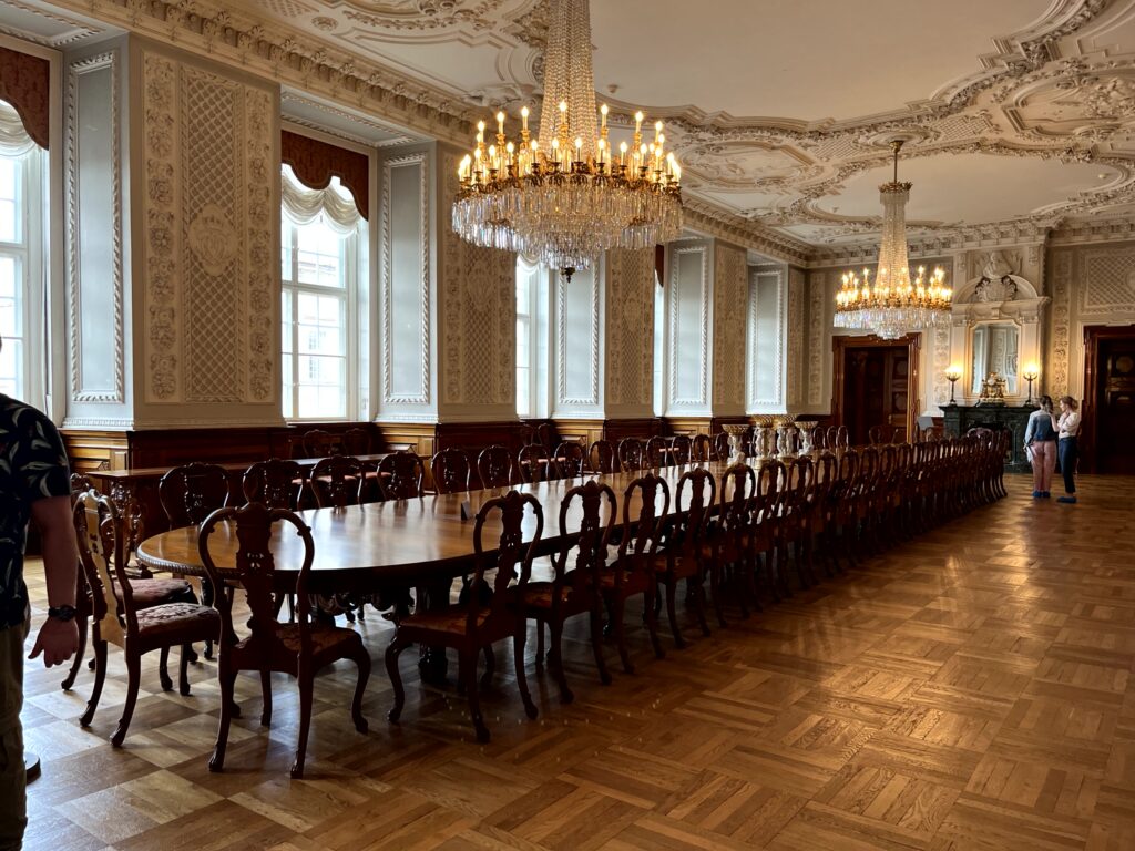 宮殿内部はシャンデリアがきれいで、すっごい長いテーブルや、あんまりヨーロッパぽくないタッチの絵画、かっこいい紋章などがありました。