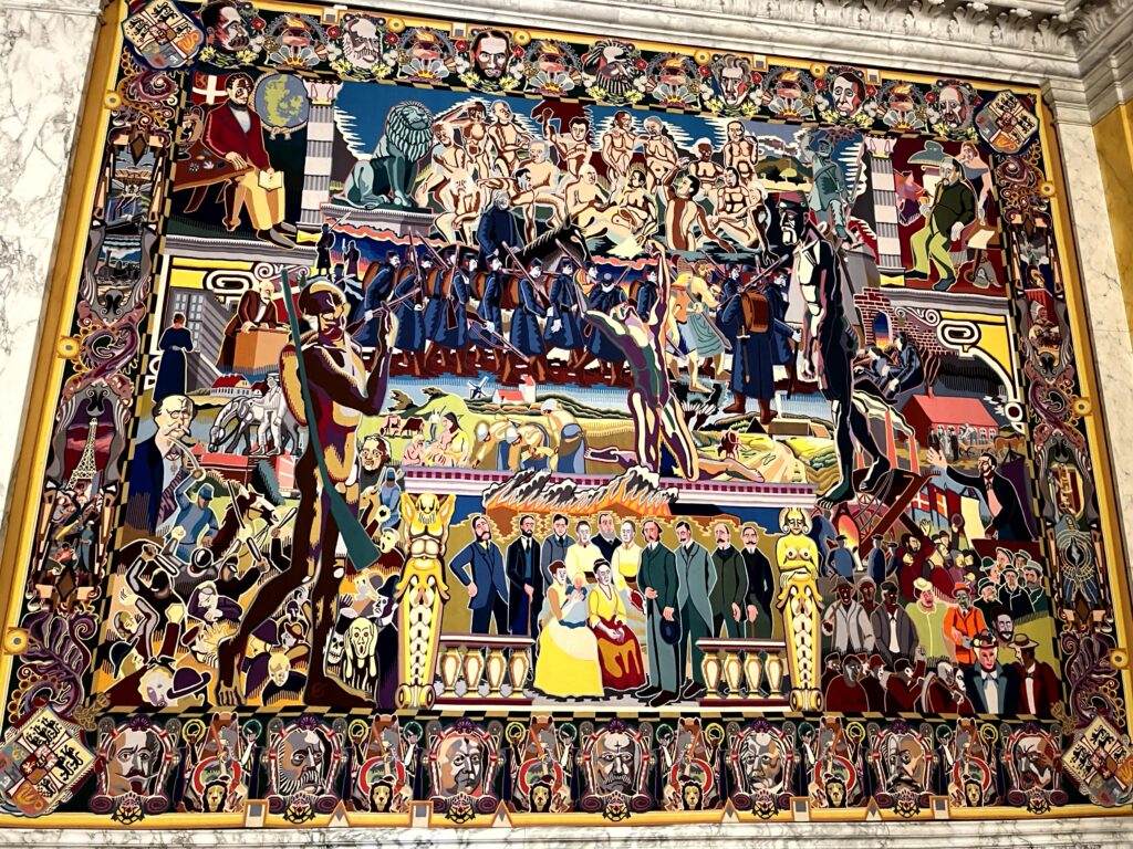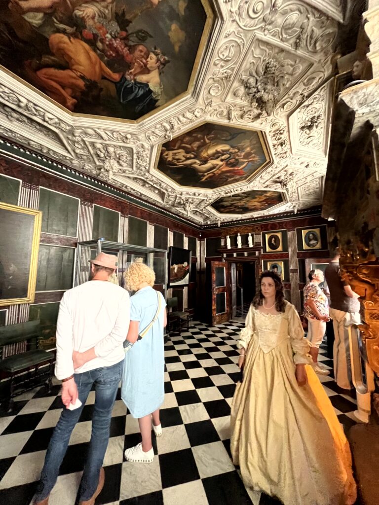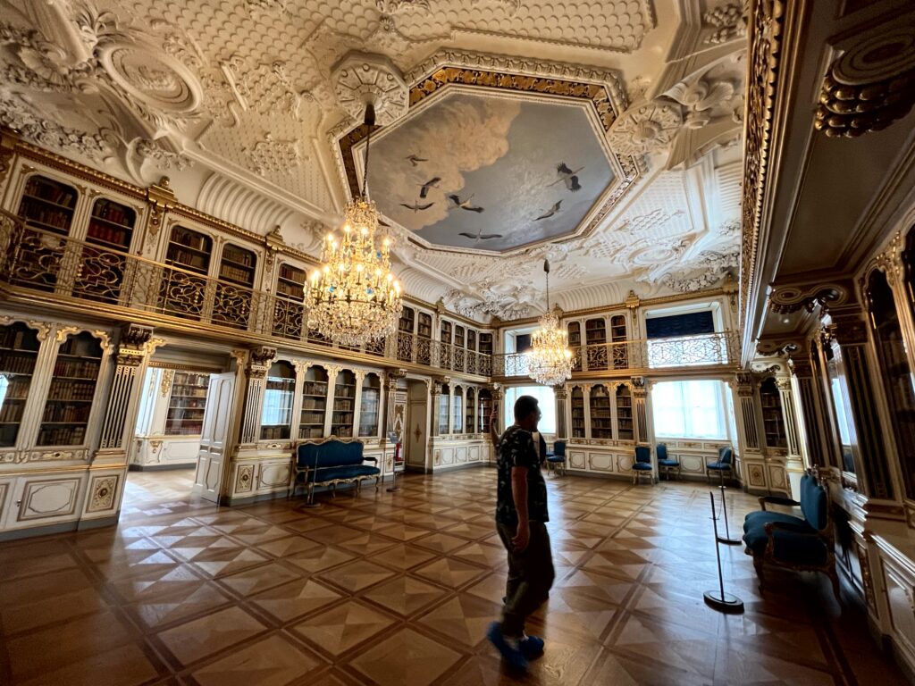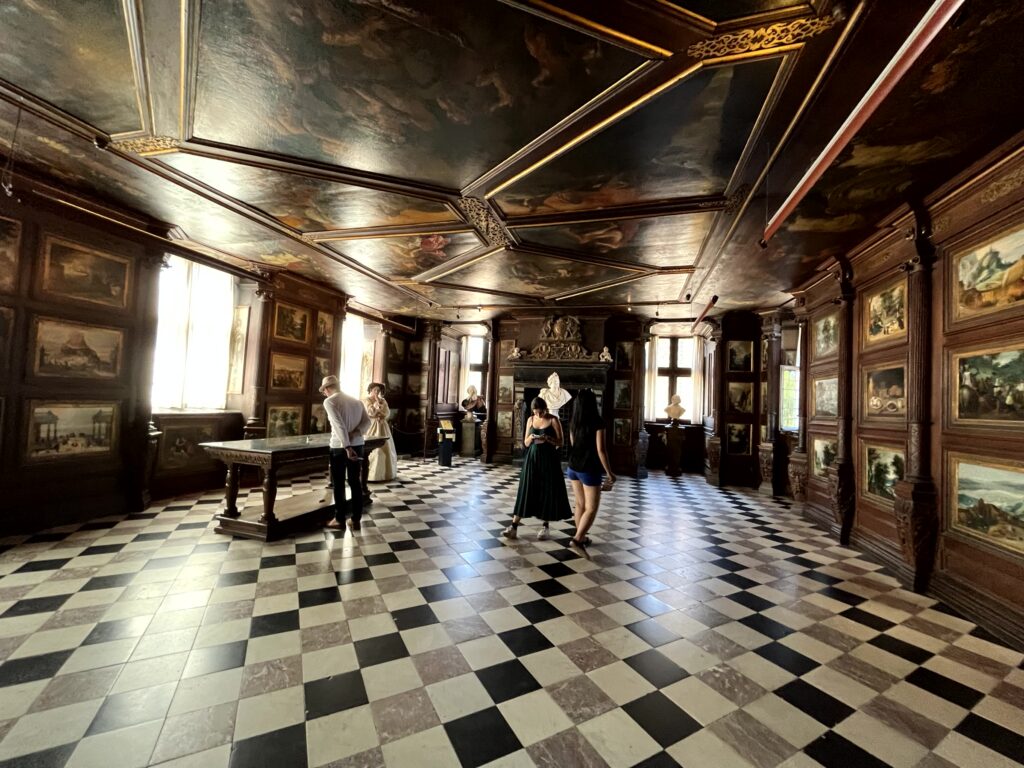 宮殿内部はシャンデリアがきれいで、すっごい長いテーブルや、あんまりヨーロッパぽくないタッチの絵画、かっこいい紋章などがありました。