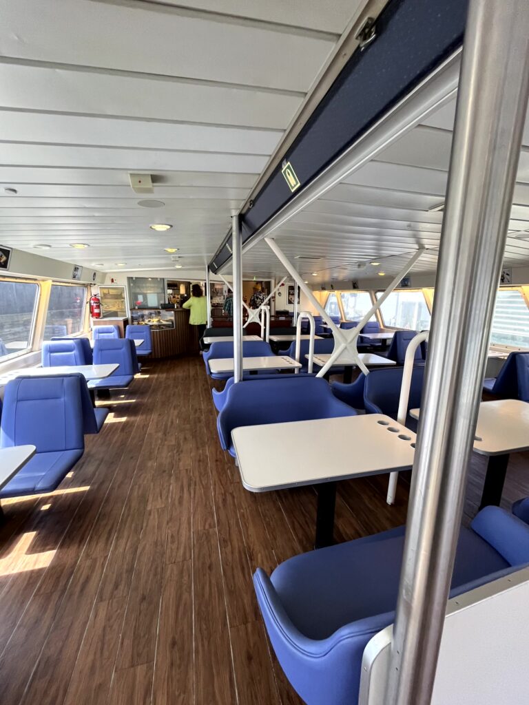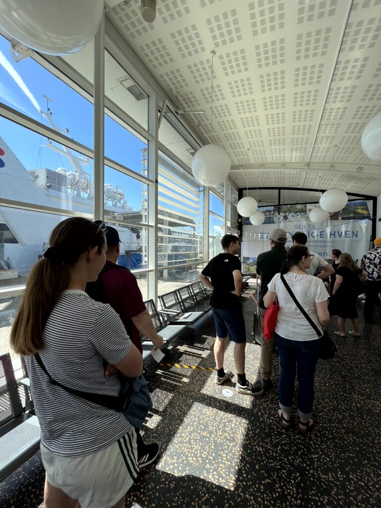 片道69DKKで乗船します。時刻表を確認し、中に入ると売店もありました。