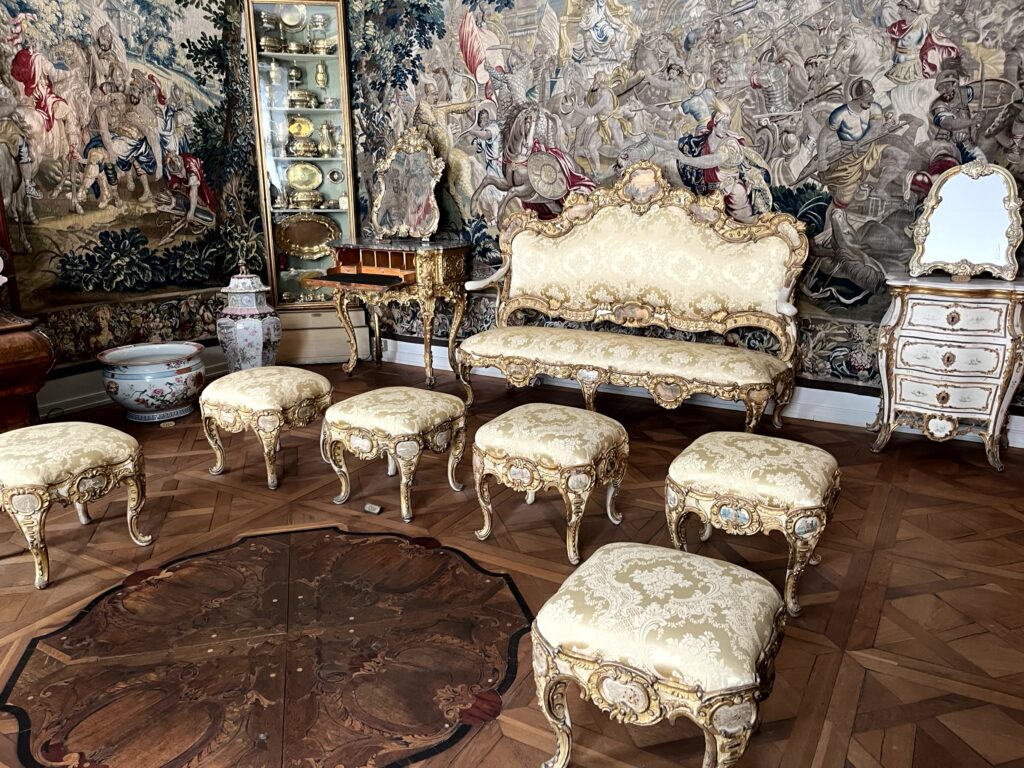 ソファ柄はヨーロッパの王族はだいたいどこも似たような柄になるんだななどと思いました。