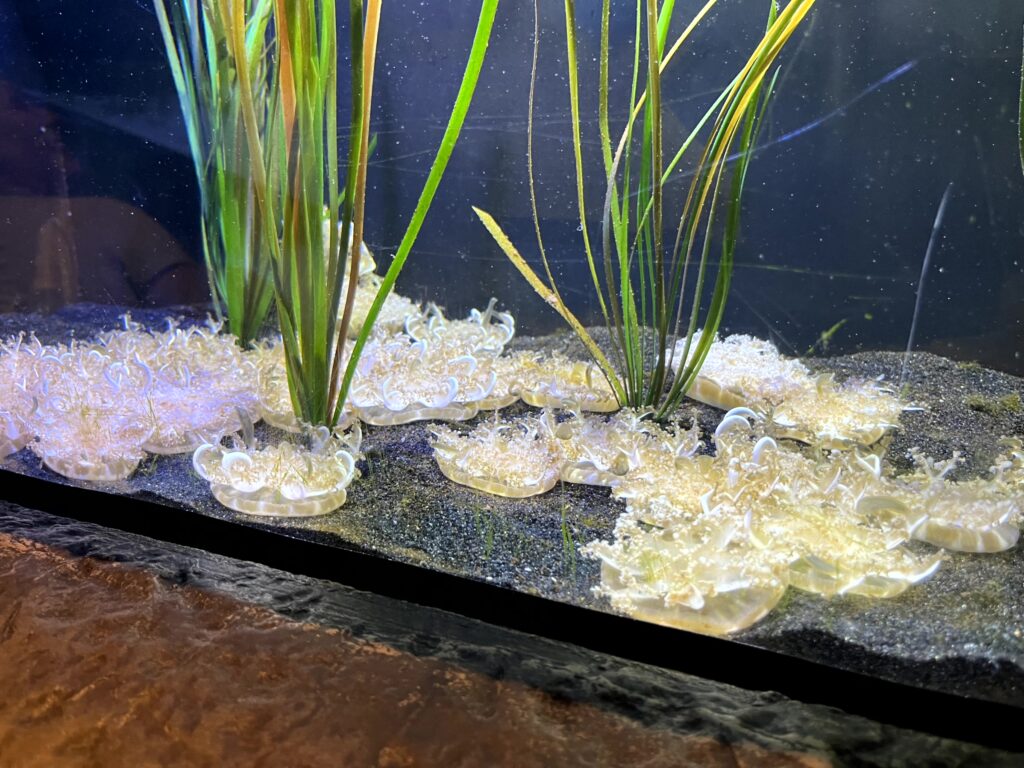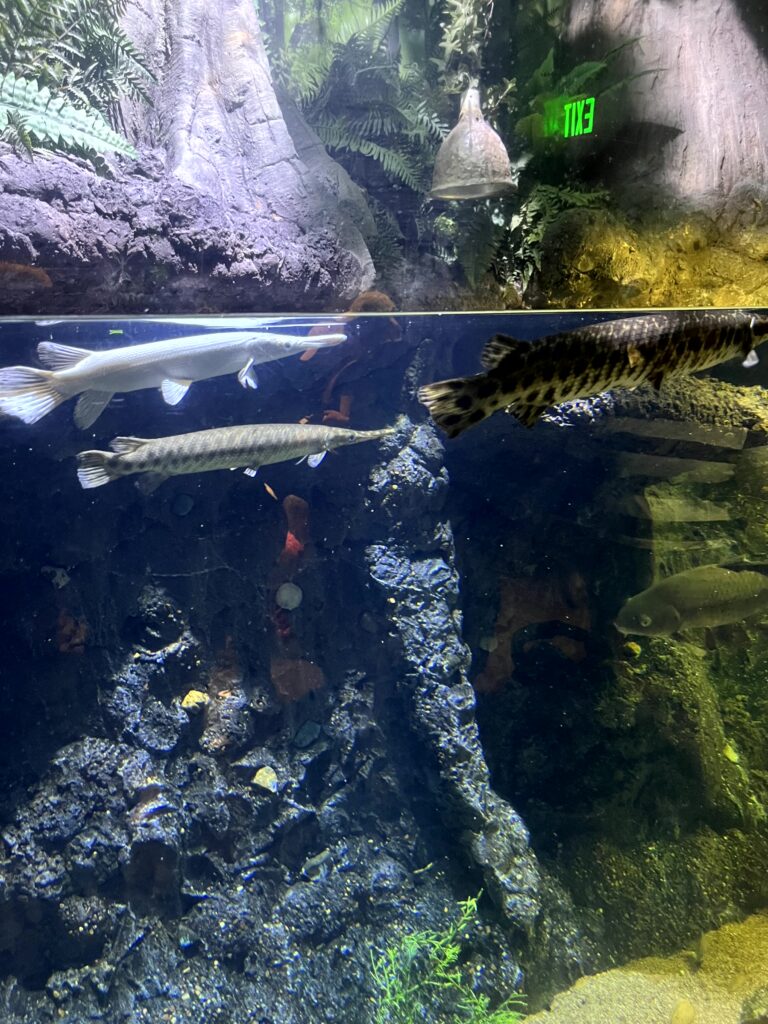 内部にはワニやクラゲ、フグ、そして様々な魚たちが展示されています。