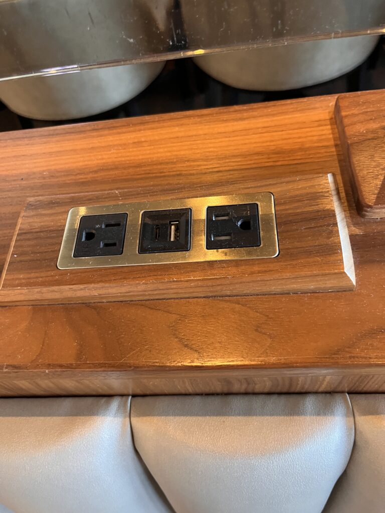 電源はテーブル席やソファー席の足元などに設置されていました。