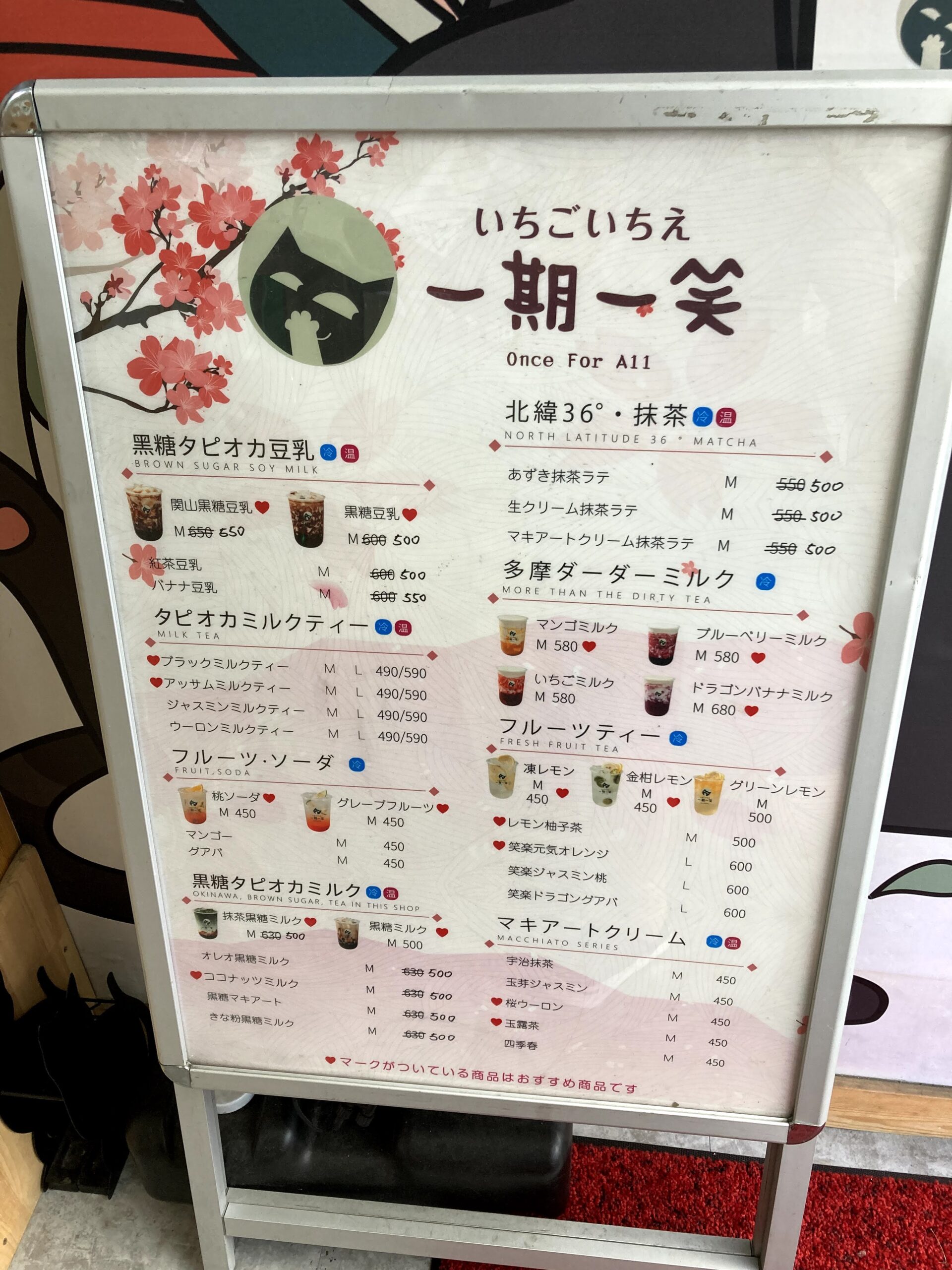 ちなみに2021.10現在だと300円で黒糖ミルクティーが販売されている。入り口に記載があるので確認しておくのをおすすめする。