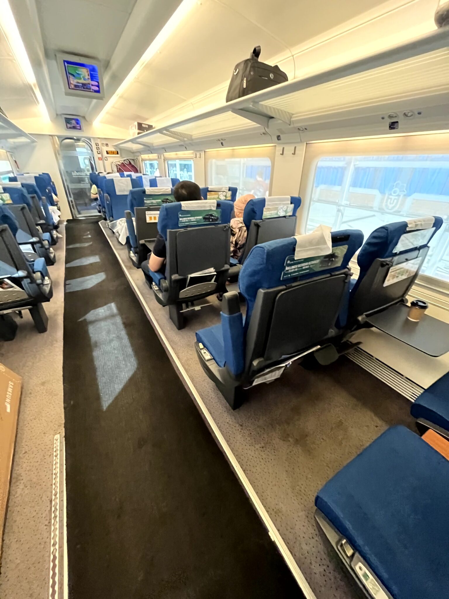 車内は、座席も広くて快適でした。長時間の移動ですが、清潔感があって安心できます。