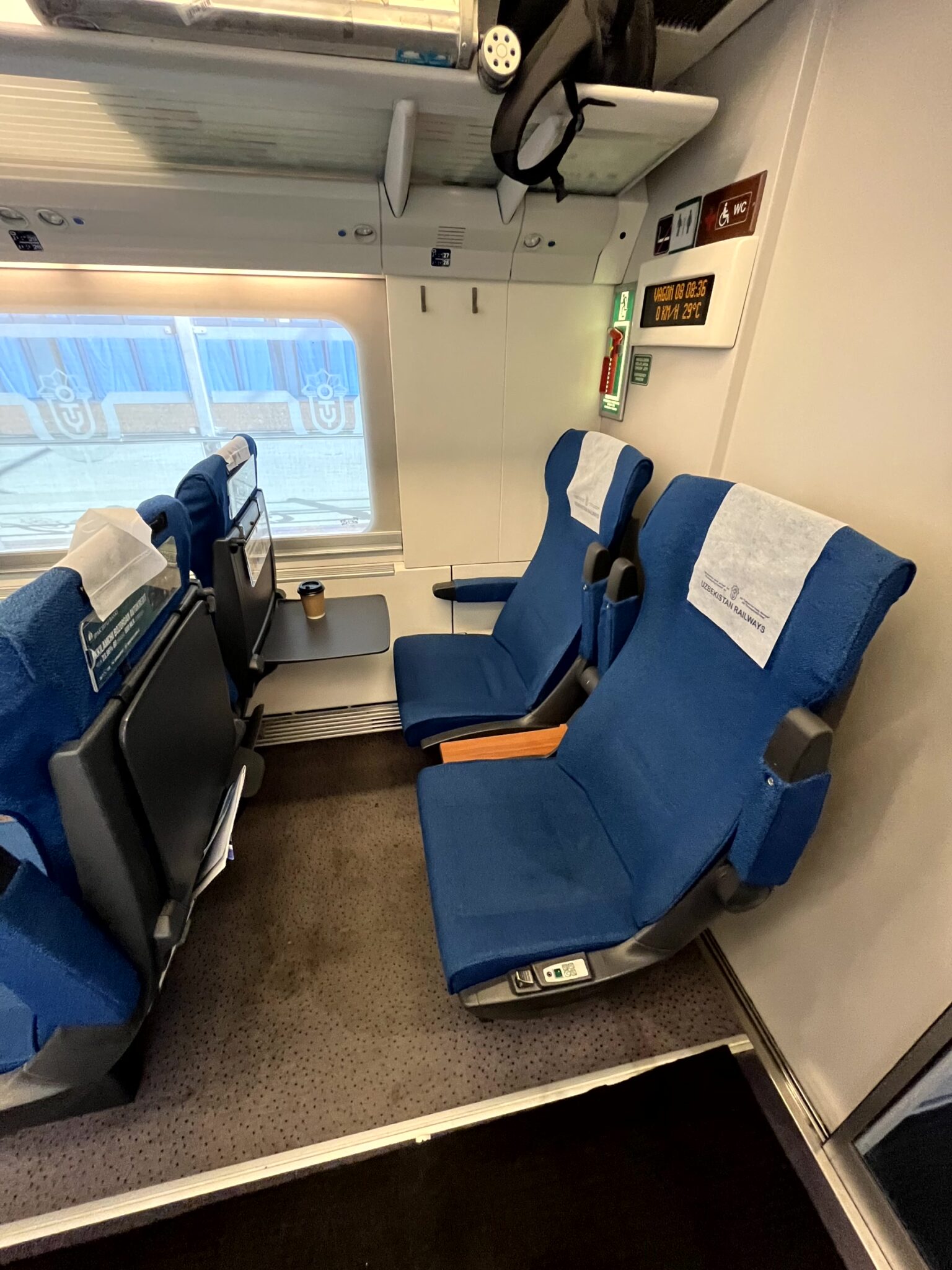 こちらが乗車した高速列車「アフラシアブ号」。外観はヨーロッパの特急列車みたいでかっこよかったです。