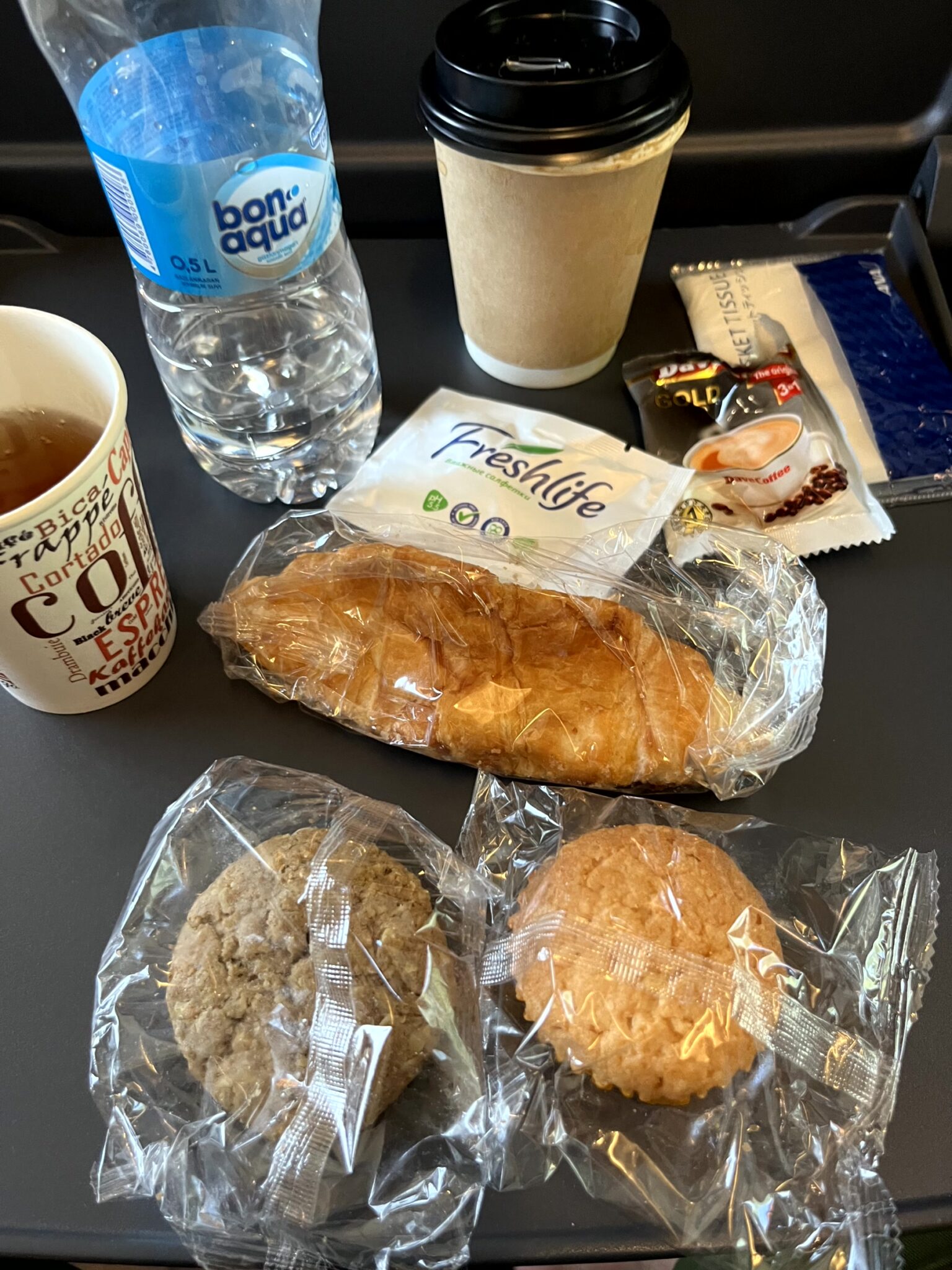 車内販売ももちろんありましたが、驚いたことに、謎のランチが無料で提供されました。
